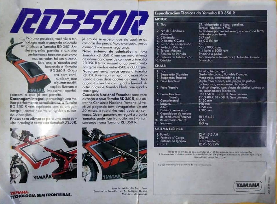 RD350R 1YH MODEL 1988 YPVS 55 hp @ 9000 rpm & 4,74 mKg @ 8500 rpm