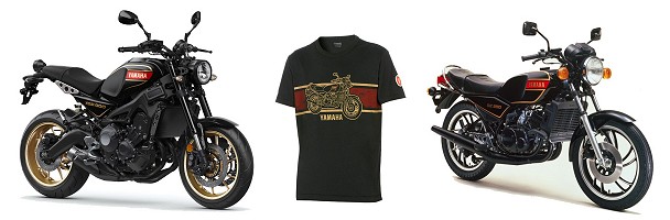 "For 2020, the XSR900 will be available in the new '80 Black' colorway with a black, red and gold color combination. This design is inspired by the signature Yamaha look of the 1980s and pays homage to the iconic special edition RZ250 , the first generation of the legendary liquid-cooled 2-stroke engine models." The T shirt whith the RZ250 4L3 was available in France. |